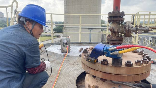 內(nèi)六角高強螺栓的預緊與普通六角螺栓的預緊原理是一樣的,只是設計有些微不同。內(nèi)六角高強螺栓有相應的內(nèi)六角液壓扳手工具來進行拆卸和預緊。其和普通液壓扳手的區(qū)別并不大,只是驅(qū)動軸不同。普通的液壓扳手驅(qū)動軸設計為四方軸,適配不同規(guī)格的高強套筒套在螺母上進行作業(yè)。內(nèi)六角液壓扳手的驅(qū)動軸外端直接為六方軸,直接將驅(qū)動軸插入內(nèi)六方螺母進行作業(yè),不需要再加套筒,不同規(guī)格需要配置多個規(guī)格內(nèi)六方驅(qū)動軸。