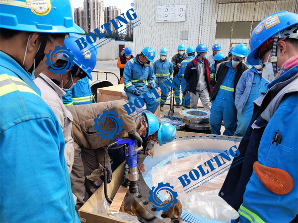 為助力青島某海洋工程有限公司建設(shè)世界最大的乙二醇模塊化項目,我公司技術(shù)人員身赴現(xiàn)場培訓(xùn)指導(dǎo)數(shù)顯電動定扭矩扳手的使用,獲得客戶的一直好評和稱贊。