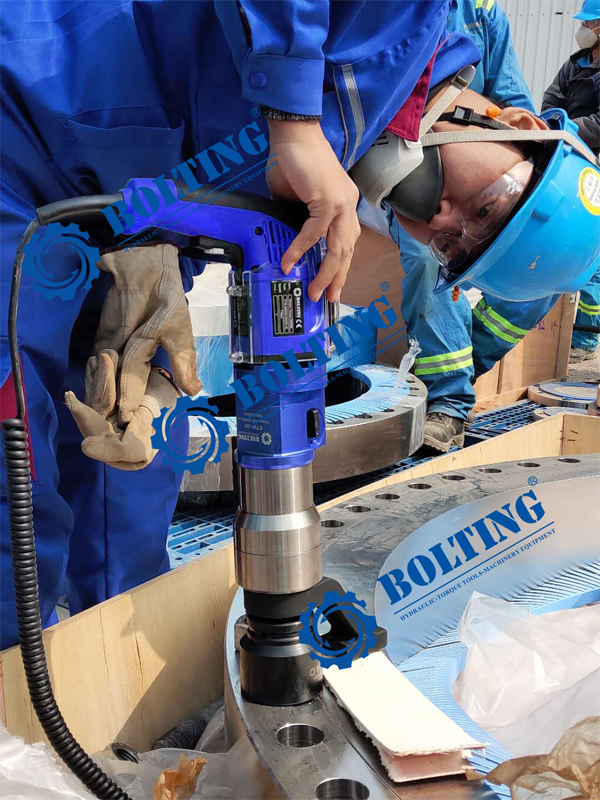 在技術(shù)人員的專業(yè)培訓(xùn)和解答之下,現(xiàn)場使用人員逐一了解數(shù)顯電動定扭矩扳手的了解和使使用,相比之前使用的液壓扭矩扳手使用更加輕便,單人即可操作,無需更多人員陪同作業(yè),減少了大量的時間和人力。